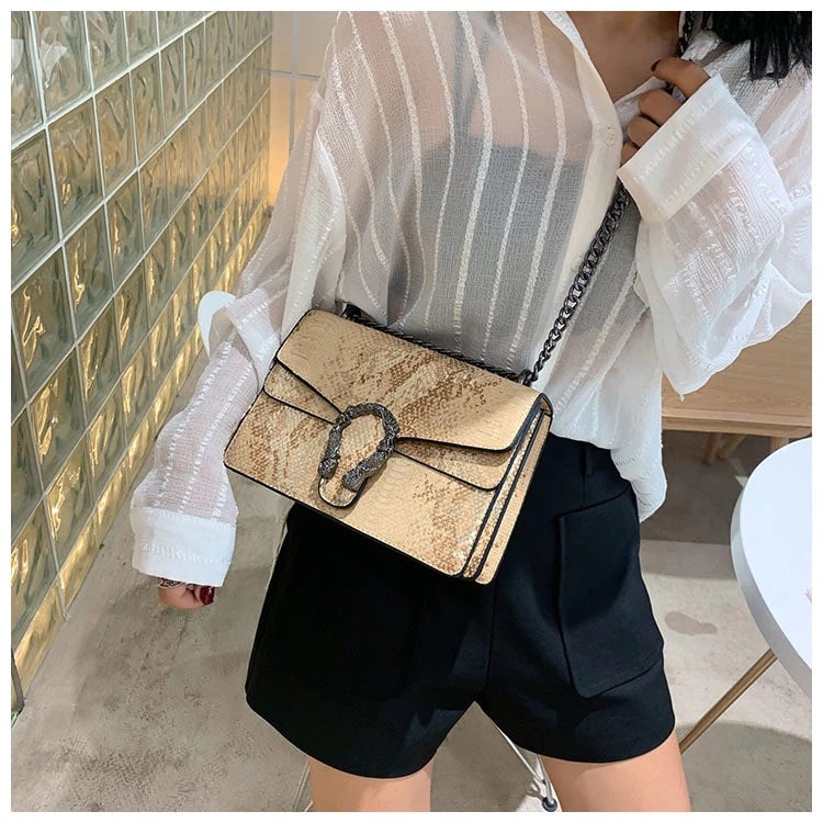 Ce magnifique sac python doré est voué à vous démarquer des autres. Un motif accrocheur et une couleur douce, le mélange est agréable à voir. Ce sac python doré est un accessoire de mode à part entière. Totalement indépendant, il épouse toutes les tenues d’une femme branchée. Portez-le comme bon vous semble avec son anse ajustable. Il laisse tous les goûts s’exprimer et promet chaque fois un résultat incroyable. Le sac serpent combine fermeture à rabat et à zip, le premier à l’extérieur et l’autre à l’intérieur.